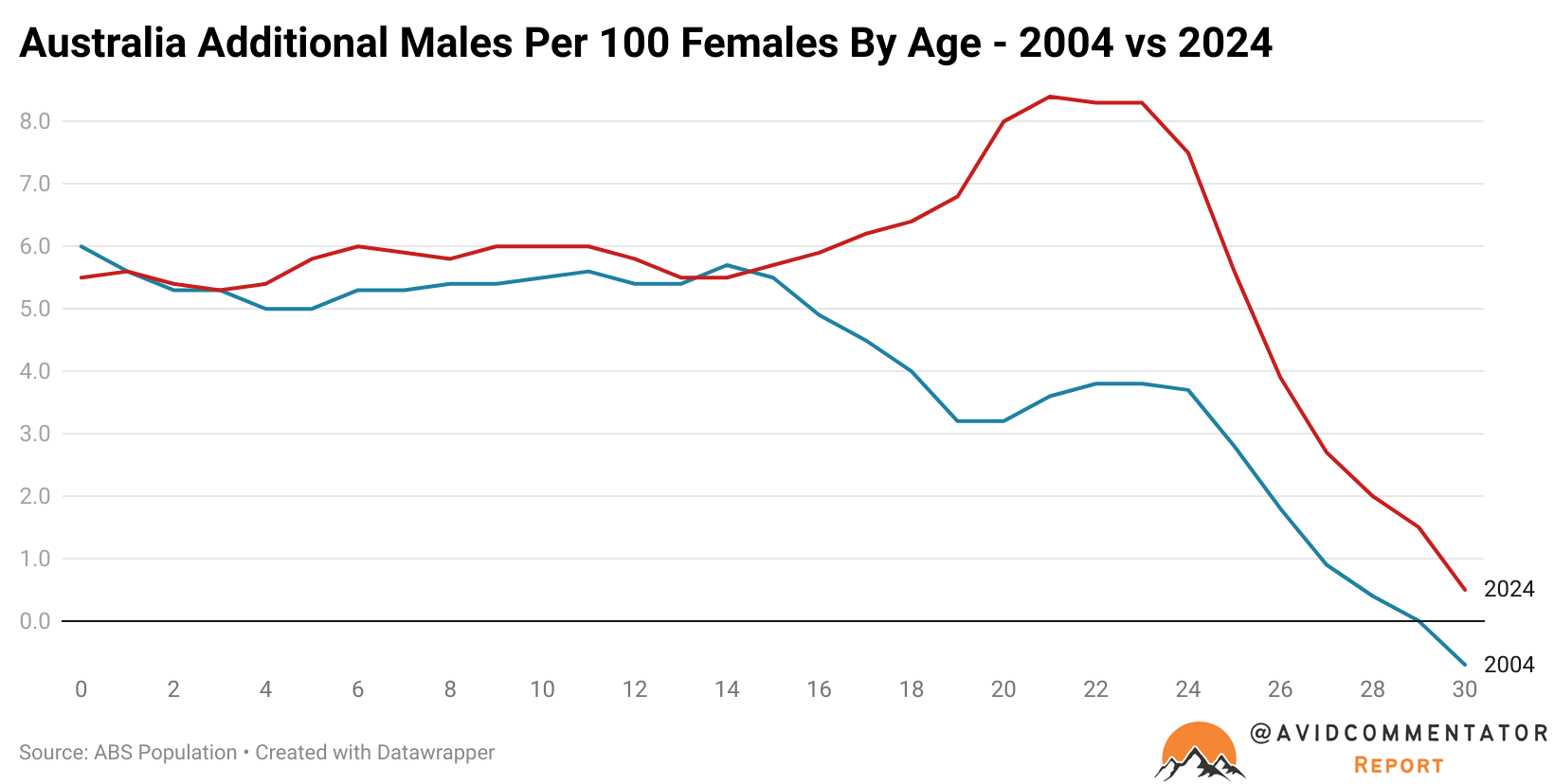 Obviously, the Australian situation is different but take a look at this interesting graph showing a huge bulge in the number of young men suddenly swelling our population, providing additional competition for jobs, housing, education, and for women.