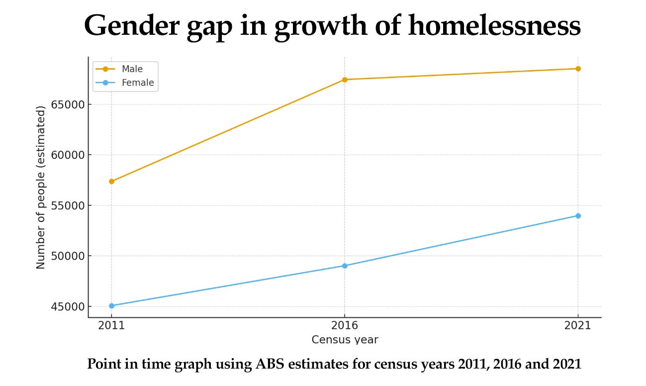 Of course, the enormous outpouring of sympathy for this young man stems mainly because he has a family, with a very young child. There's little interest from the media in stories on male homelessness but the fact remains that it is men who have always been more likely to be homeless, and many times more likely to be sleeping rough. Here's a graph of recent increases in homelessness by gender.