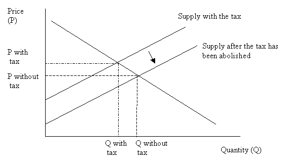 Basic economic principles, widely observed and verified in the market place, tell us that abolishment of the vendor tax on property should, if anything, result in a decrease in prices rather than an increase. Whenever a sales tax is reduced, the price cannot be expected to rise. A tax in effect represents an increase in the cost of putting the goods (the property) in question on the market. When a tax is scrapped, the cost goes down, effectively expanding the supply of properties. Now that it is cheaper to put the property on the market, more will be offered.
