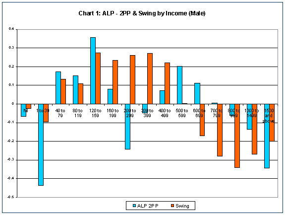 - those earning between $200 and $500 per week were, on average, Coalition supporters. Labor received no swings among any income groups earning more than $500, and above $600 the swings were sharply anti-Labor among an already conservative group.