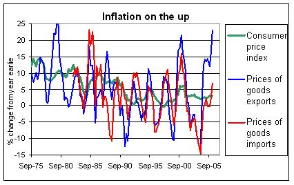I leave this sort of prediction to those with more vivid imaginations than Henry, or a far greater ability to listen at drainpipes or to learn in cosy boardroom chats. Instead this month I focus on geopolitical risks - the war on terror - plus what I might call "geo-economic" risks - the deteriorating environment and the growing disparity of wealth and incomes both within countries and between nations: this development feeding the geopolitical tensions in obvious ways. There are also the obvious economic "imbalances" so beloved of serious analysts, the US (and Australian) current account deficits, China's burgeoning current account surpluses, over-stimulated asset markets and surging commodity prices.