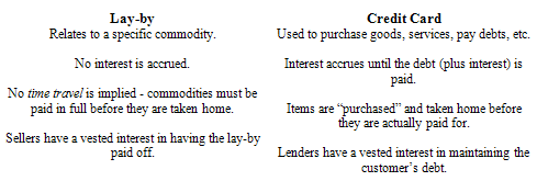 Note the significant differences between a lay-by purchase and a credit card purchase: