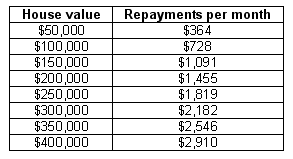 You be the judge on whether it is feasible for anyone on $365 per week ($1,460 per month) or at best a dual (husband and wife) income of $730 per week ($2,920 per month) could meet the following monthly repayments, based on the current Commonwealth Bank Standard Variable rate of 7.32 per cent (principal and interest) over a 25-year period.