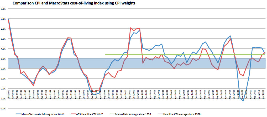 Using this data the cost-of-living index is about 0.5 percentage points higher on average since 1998.