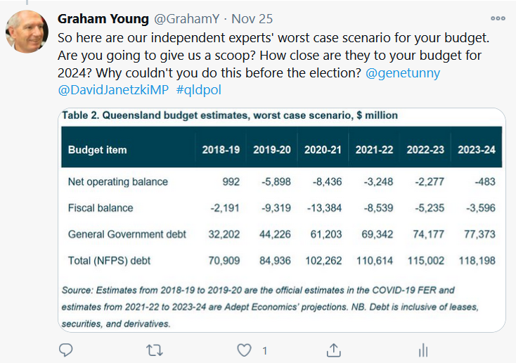 Unlike Dick, I had a 2024 Queensland debt figure because after he had refused to provide one during the election we at the Australian Institute for Progress commissioned Gene Tunny and Joe Branigan to work it out for him, which we released as "Queensland Budget Update Report".
