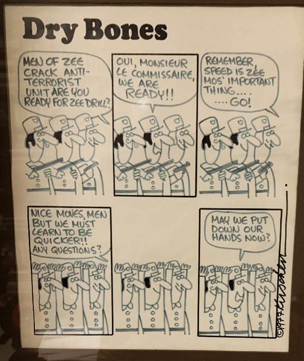 Together Dry Bones and I collaborated on publishing 335 of my articles over more than six years on a regular weekly basis – each of my articles being accompanied by a cartoon drawn by Dry Bones expressing his take on the subject matter of each article.