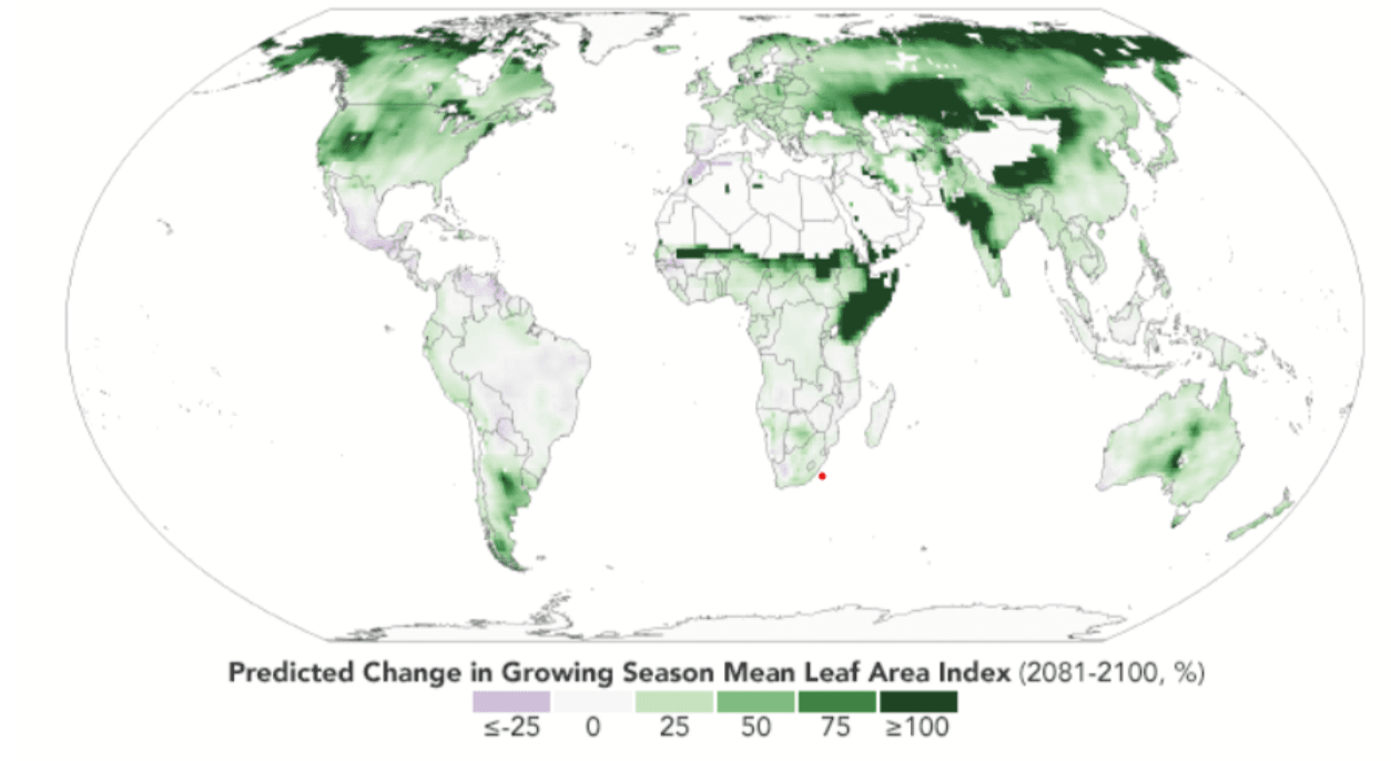 Large areas of the world, including the most populous ones, are predicted to double their plant life over the next 80 years. Every human who steps into a car or plane with a combustion engine is contributing to this future.