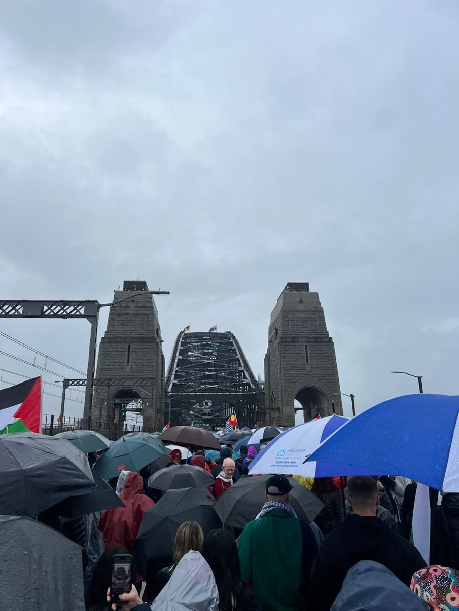 The Sydney Harbour Bridge was a symbol of hope and unity when it opened in 1932, during The Great Depression, bringing together the North and South ends of our city. Once again, last Sunday, it was a symbol of hope and unity. Hope for the starving Palestinians in Gaza. Hope for us as a human race to end the evil perpetrated. And a coming-together of our common humanity.