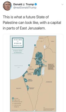 Trump's 2020 Peace Plan had famously offered the Palestinians a state in about 70% of Judea and Samaria (West Bank) and all of Gaza - (See Image below) – allowinga four years period for the Palestinian and Israeli representatives to negotiate on the basis of Trump's proposals. The Palestine Liberation Organisation rejected Trump's Plan and refused to negotiate with Israel.