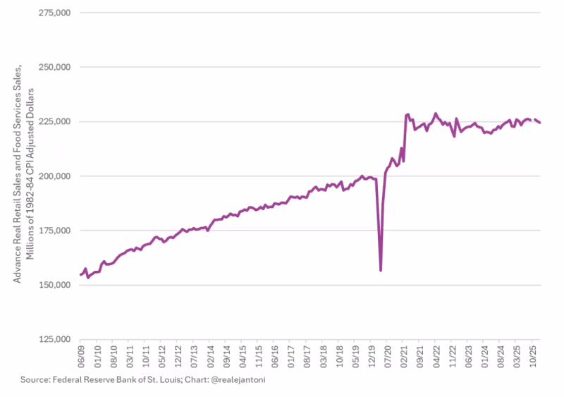 Other indicators of economic health provide only illusory gains. Once adjusted for the devastating inflation, they largely vanish. So it is with retail sales, which were rising in real terms before lockdowns, jumped up with stimulus cash, but have stayed flat in the post-lockdown period.