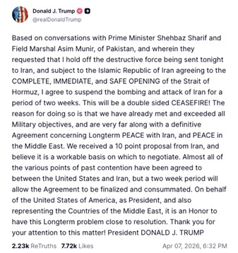 Trump will have to continue to defang and degrade Iran until Iran signs the Instrument of Surrender. There will be no pause in hostilities or prosecuting the conflict whilst the Instrument of Surrender remains unexecuted by Iran.