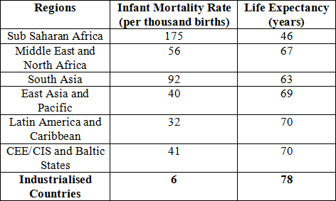 My reference is The State Of The World's Children, an annual publication of the United Nations Children’s Fund. The table below is an extract from Table 1 in the 2005 issue.