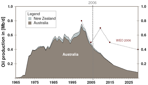 Dramatic as these projected declines are (and they will be devastating for the world’s economy and already dwindling food production at a time when we must find a way to feed an additional 76 million mouths every year), they portray a falsely optimistic view of oil availability. Of course, it is not the world’s oil extraction rate that matters so much as oil’s availability on the world market. The current high oil prices are a boon for the world’s main oil exporters. Their economies, if not their populations, are growing rapidly. (An average Saudi Arabian woman has four children.) These nations typically have low domestic fuel prices and these three factors are leading to rapid rises in internal oil use. Rising internal oil consumption reduces the capacity of oil-exporting nations to export. This is the basis of the "Export Land Model" of Jeffrey Brown and it goes a long way to explaining why oil is currently US$95 per barrel and rising. Oil available on the world export market is already decreasing and the price for Australian consumers would currently be higher if a number of poorer developing nations had not already given up trying to afford it. (In a sense, oil is still “cheap” for our use because we are now using "their" oil.) According to the simplest extrapolations of the Export Land Model (for example. ignoring the negative feedbacks on growth in exporting nations that may result from the economic privations of oil importers) the export market for oil may, essentially, dry up within six years.