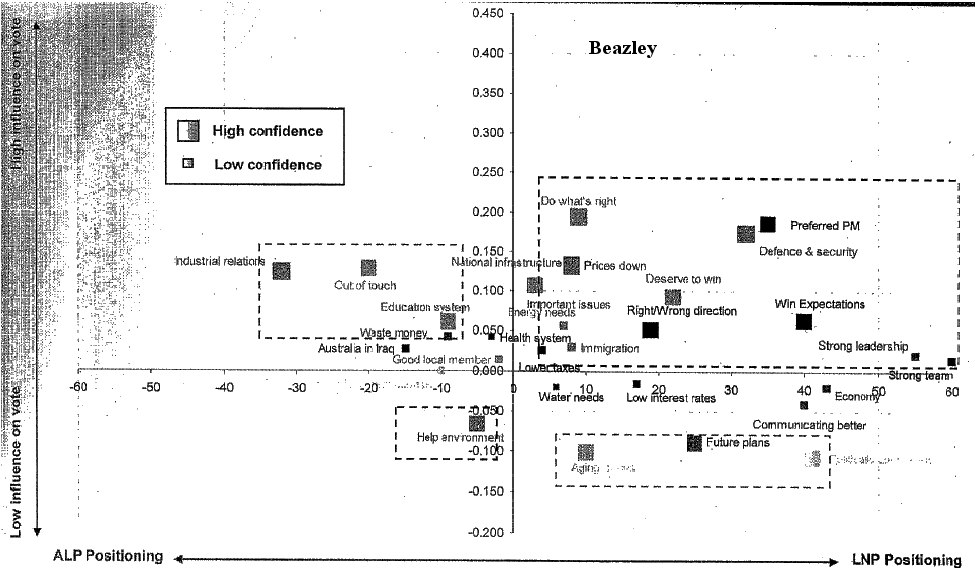 So to start with, let’s have a look at how the issues were playing out under the last days of Beazley (just click on the thumbnail - and ignore the little dotted boxes and arrows, - that’s just the Crosby Textor commentary for the Coalition).